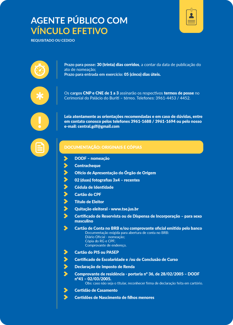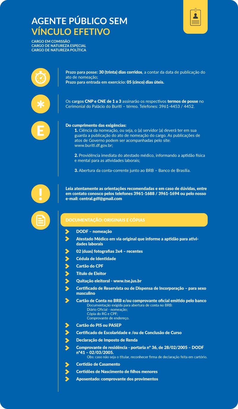 Orientações Gerais sobre nomeação e posse de Agente Público com vínculo e sem vínculo na Casa Civil do DF: